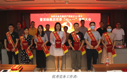 为庆祝中国共产党成立101周年,纪念“七•一”建党节,7月6日上午,集团党委召开了庆祝建党101周年暨“七•一”表彰大会。集团董事长蔡衍钻、党委书记唐伟雄、党委副书记兼纪委书记路晓波、党委委员、纪委委员、各支部委员、受表彰的优秀党员、优秀党务工作者、预备党员、党员代表、入党积极分子参加了会议。