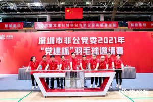 为庆祝中国共产党成立100周年,激励广大党员在党史学习教育中坚定理想信念、汲取奋斗力量,10月16日至17日,由深圳市非公党委主办,万科集团党委承办的2021年“党建杯”羽毛球邀请赛在罗湖体育中心隆重举行。来自市非公党委直属党组织共计43支代表队、436名运动员和领队参加了比赛。市委统战部副部长、市工商联党组书记、市非公党委书记李勇,市工商联党组成员、市非公党委专职副书记耿绍炜,万科集团党委副书记、监事会主席、工会主席解冻,以及8名市非公党委今年表彰的优秀共产党员和优秀党务工作者代表出席活动。