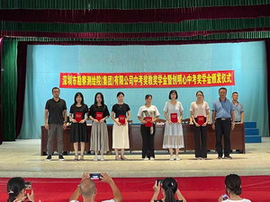 陈坚煊副校长主持颁奖仪式,并宣读《深圳市勘察测绘院(集团)有限公司中考奖教奖学金颁奖决定及获奖名单》,蔡向葵校长、路晓波副总经理向获奖师生颁发证书,分别对6名优秀教师和在中考取的优异成绩的47名考生给予奖励。同时,蔡向葵校长向深勘集团授予“奖教奖学、造福桑梓”荣誉奖牌。