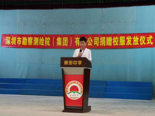 2020年9月24日,秋风送爽,丹桂飘香,桑田中学的校园里一片生机盎然,深圳市勘察测绘院(集团)有限公司捐赠校服发放仪式在桑田中学钦耀礼堂举行,仪式由陈坚煊副校长主持。