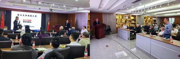 讲座开始,丘建金大师对孙宏伟教授的到来表示热烈欢迎,并指出我们遇到的很多岩土工程问题,尤其是地基基础问题与结构问题息息相关,希望我们的岩土工程师通过这次讲座加深对于结构问题的理解。