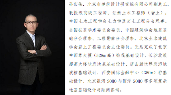 孙宏伟教授级高级工程师首先从自身经历出发,讲述了自己从学习结构工程到从事勘察设计工作,再回到主体设计院工作的经历及体会,提出岩土工程师在上部结构问题与下部地基问题中间的“夹缝”中生存,说是“夹缝”其实也是一种“纽带”,在这个位置上,岩土工程师更要明确自身的责任与担当。接着,孙宏伟教授级高级工程师列举了一系列包括北京丽泽SOHO、美国旧金山千禧塔(Millennium Tower)以及北京大兴国际机场等地基基础工程案例,指出地基基础的设计级需要结构设计单位、岩土设计单位、地勘单位的互相配合,还需要充分结合规范要求和现场施工工艺才能做好。