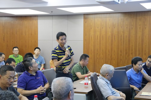 在互动与答疑环节中,张旷成大师、温科伟博士等业内专家与何教授就岩土工程现阶段未解决的本构问题进行了探讨;对于何教授提出的殷切期望和建议,唐伟雄总经理作出了积极回应并要求各单位开展自己专业的学术研究和统计归纳课题;基础公司副总经理李亮辉分享了在何教授座下学习工作的经历,强调了要学以致用,要多下工地,在勘察、设计、施工一体化的趋势下,培养综合技术人才。现场氛围高涨,细雨润物无声,大家如置身学堂。讲座不间断持续两个多小时,听取讲座的专业技术人员受益匪浅。