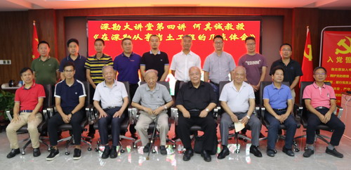 在祖国70华诞之际,深勘大讲堂迎来第四期,特邀集团技术顾问何其诚教授做《在深勘从事岩体工程的几点体会》学术交流讲座。集团董事长蔡衍钻、总经理唐伟雄、副总经理路晓波、国家首批勘察大师张旷成、省勘察大师李爱国博士、深圳市岩土工程有限公司董事长温科伟博士以及各专业技术人员听取了讲座。