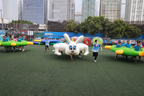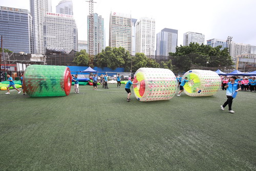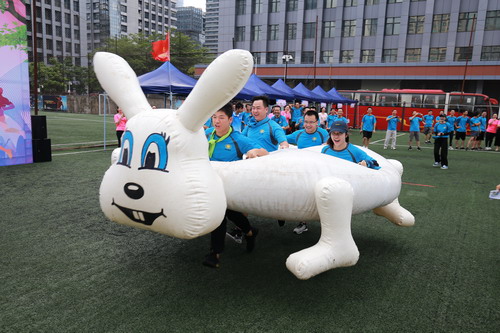 开幕仪式结束后,天公作美,喜降甘霖,雨过天晴,暑意消半,大家稍事休息调整后,本届运动会的团体趣味运动项目如期举行。团体趣味运动共设“龟兔赛跑”、“梦想起航”、“移舟过河”、“疯狂贪吃蛇”四个项目,不仅是智慧和体力的角逐,更是团结和协作的默契比拼。集团各单位积极发动,认真组织,广大员工踊跃参与,近两百人、十二支代表队参加了比赛。
