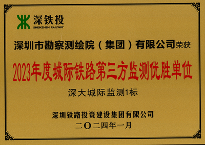 会议公布了2023年度深圳城际铁路项目参建单位获奖名单。其中由深勘集团承担的深圳机场至大亚湾城际深圳机场至坪山段工程第三方监测、自动化监测1标在2023年度第三方监测单位中取得了第一名的成绩,并荣获“2023年度城际铁路第三方监测优胜单位”。