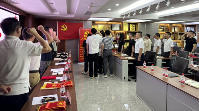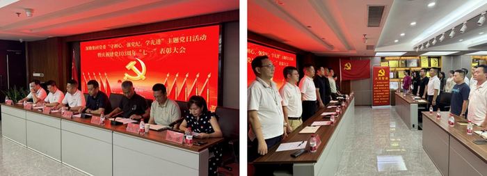 表彰仪式结束后,集团党委委员/统战委员吴志斌带领预备党员入党宣誓,与会党员面对党旗,举起右手,重温入党誓词。这是对全体党员同志的又一次精神洗礼,传承红色基因,弘扬优良传统,牢记使命担当。
