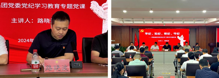 集团党委书记路晓波做《守初心、强党纪、学先进》主题讲话,向所有党员同志致以节日的问候和崇高的敬意;回顾中国共产党的光辉历程,强调全体党员在新时代要牢记党的初心使命,强化党的纪律作风,不断学习先进典型;并讲授《学纪知纪明纪守纪》党纪学习教育专题党课,深入解读党的纪律要求和守纪意识的重要性,引导全体党员树立正确的党性观念。路晓波书记要求集团全体党员要增强党纪意识,严格遵守党的政治纪律和政治规矩;把学纪、知纪、明纪、守纪刻印在心,真正使学习党纪的过程成为增强纪律意识、提高党性修养的过程,时刻牢记“心中有党、心中有责、心中有戒”,牢固树立纪律和规矩意识,严守党的纪律不越轨,面对利益诱惑不动心,始终做到让党组织放心,真正成为学纪、知纪、明纪、守纪的明白人。