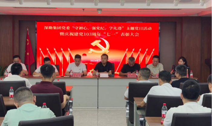 为庆祝中国共产党成立103周年,弘扬爱国主义精神,凝聚改革发展共识,增强广大党员的责任意识和使命担当,激励党员立足本职岗位发挥先锋模范作用,以饱满的热情和昂扬的斗志为集团事业贡献智慧和力量,7月4日下午,深勘集团党委组织召开“守初心、强党纪、学先进”主题党日活动暨庆祝建党103周年“七一”表彰大会,集团党委领导班子成员及全体党员干部、党员代表、积极分子代表参加了会议。