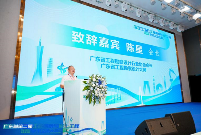 广东省工程勘察设计行业协会会长陈星,广东省岩土力学与工程学会理事长杨光华,主办单位代表:广东省工程勘察设计行业协会工程勘察分会会长/广东省岩土力学与工程学会勘测技术专业委员会主任委员/全国工程勘察设计大师/深勘集团首席科学家丘建金,承办单位代表:东莞市建筑科学研究院有限公司院长张彤炜出席并致辞。