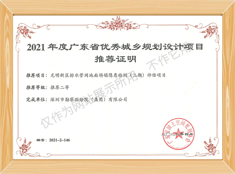 光明新区排水管网地面坍塌隐患检测(二期)评估项目-广东省国土空间规划协会二等奖