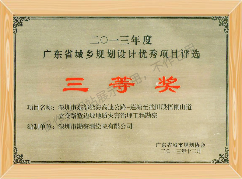 深圳市东部沿海高速公路-莲塘至盐田段梧桐山道立交路堑边坡地质灾害治理勘察-广东省城市规划协会三等奖