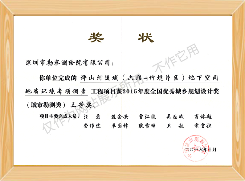 坪山河流域(六联-竹坑片区)地下空间地质环境专项调查-中国城市规划协会三等奖